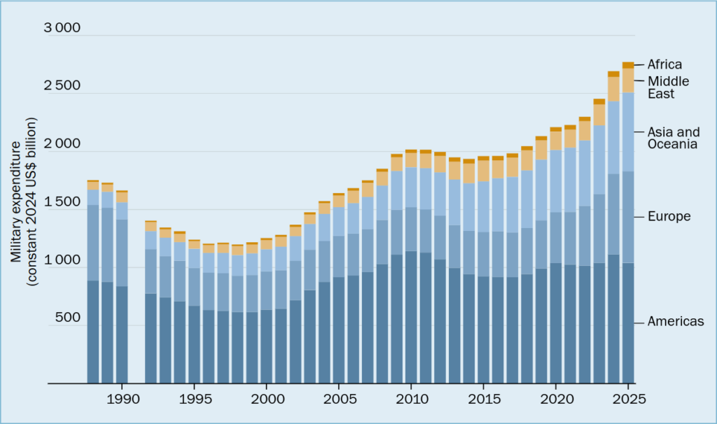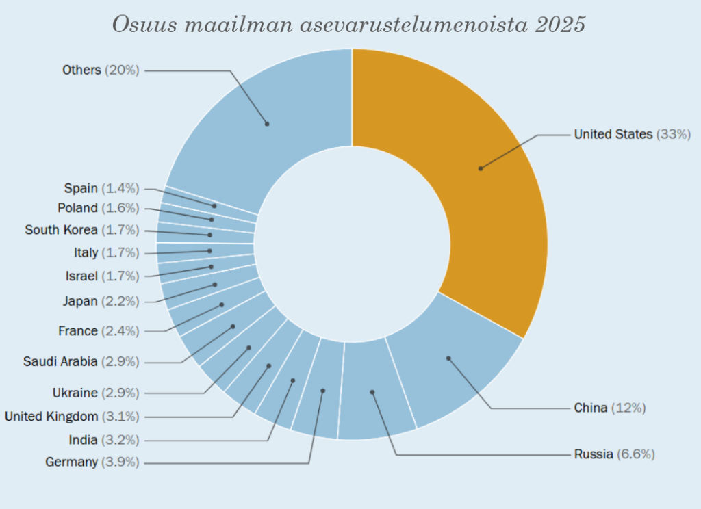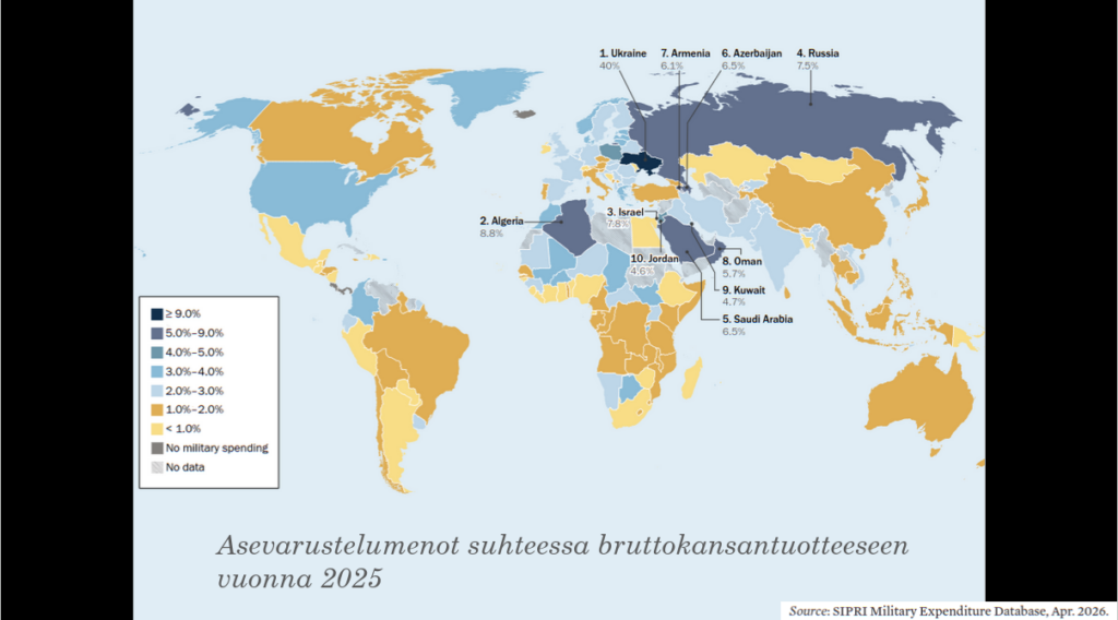 Pohtiessamme millainen panostus aseelliseen maanpuolustukseen on oikein mitoitettua ja milloin militarismissa mennään meillä ja muualla liian pitkälle, Tukholman kansainvälisen rauhantutkimusinstituutti SIPRI:n jokakeväinen raportti antaa hyvää pohjaa keskustelulle.